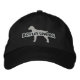 This fantastic Boykin Spaniel hat is embroidered with the dog breed's silhouette, standing with its name printed in front. The sporting dog silhouette is a dark silver grey, and the text outline is white. Looks fantastic on our black hats!
