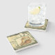 The coasters are gorgeous, a quality feel and heavy weight. They look like a precious archeological find. A rustic stone juxtaposed with a modern floral black and white print. I like the way the print goes slightly imperfect on the cut stone edges giving them a kind-of natural beauty.