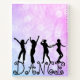 A fun notebook with silhouetted dancers dancing on top of the word dance against a dazzling bokeh background.