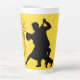 Black silhouette of ballroom tango dance couple with text on yellow background