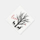 This winter paper party napkin design features a silhouette doe and buck deer couple. The are standing under a leafless tree with a red bird all done in black, white and red. ^
