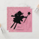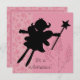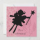A silhouette of a fairy princess with a wand on a pink flowered background and areas you can easily add your own party specifics on an invitation sure to please your little princess!