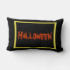 This dec pillow would make a great addition to your holiday decor. Designed with a bat in flight against a red and orange oval. The reverse side has the sign "Halloween" printed in large, scary lettering. A yellow border was added. A black backround is done on both sides. These pillows are available in assorted styles, fabrics and sizes.