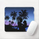 Silhouette of a couple embracing on the beach mouse pad
