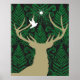 Silhouette of a deer, a dove and a star against a poster