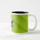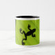 Silhouette of frog through banana leaf Two-Tone coffee mug