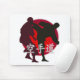 Silhouette of Karate fight, red circle background. Mouse Pad
