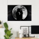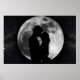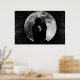 A man and women in love embrace and kiss at night in a front of a full moon.