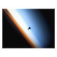 Silhouette of space shuttle Endeavour over Earth's colourful horizon featured with STS-130.