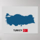This clean and modern artwork features the silhouette of Turkey in a deep blue hue, set against a neutral grey background. Positioned in the top corner is the Turkish national flag, adding a patriotic and symbolic touch to the design. Bold typography highlights the country’s name, giving the composition a strong and balanced look. Ideal for travel enthusiasts, cultural displays, or educational settings, this piece celebrates the geographical and cultural identity of Turkey with a minimalist and contemporary style.