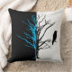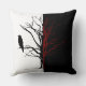 Silhouette Black Bird Raven reversible. Picture of Raven or Black Bird perched on a tree two tone. Ravens, crows and black birds can be confusing. Choose your colours, add fonts and rearrange graphics to fit your taste. Raven Bird great gift idea for those that love blackbirds, crows and ravens, black and white themed pillow with red and blue accent colours you can change.
