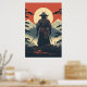 Silhouette of a Samurai Warrior with the moon, mountains, and trees.