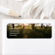 Beautiful personalised wedding address labels featuring trees at dusk, silhouetted with the sun shining thorough the tree branches as it goes down. The light from the sun is playing on the wild flowers under the trees.