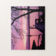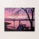 Silhouetted Couple on Dock with Pink Sunset Sky Jigsaw Puzzle