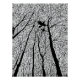 In this captivating black-and-white artwork, the haunting beauty of winter’s stillness is vividly brought to life. Branches, bare and skeletal, stretch skyward, their intricate network of lines weaving a natural tapestry against a stark white sky. Two ravens, silhouetted in flight, add a touch of mystique to the scene, their dark shapes contrasting powerfully with the delicate, leafless branches. This design evokes feelings of solitude, mystery, and the quiet strength of nature in its dormant state, inviting the viewer to ponder themes of life, death, and resilience.