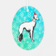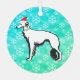PIP's Silken Windhound Image with Christmas hat and lighted collar on a snowflake, blue, green background.