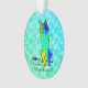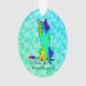 Colourful Silken Windhound Ornament with green & blue snowflake background.