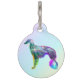 I looked through a lot of pet stores and web sites then I saw Zazzle and a tag with guitars in the background so we added his name and photo o nether front and our phone numbers on the back. It was beautiful and unique just perfect