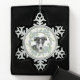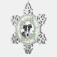 Floral framed Silken Windhound puppy on snowflake ornament.