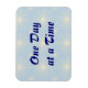A gentle reminder that life is lived One Day at a Time. These words of wisdom are shown against fresh pattern of sunbursts in soft colours on blue, reminiscent of silk pj's!