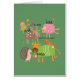 Silly animals including a pig, bull, porcupine, bird, sheep, deer, and fox with animal sounds text on animal print T-shirts, mugs, cards, stickers, magnets, keychains, mousepads, pillows, journals, bags, and more!
