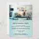 Funny housewarming party invitation featuring an image of a cow on the couch in an ivory and aqua teal with neon mint colour setting.