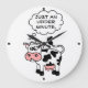 © 2012 Socialite Designs. Our silly cow thinking "Just an udder minute" wall clock design is a fun addition to any room or office. Keep our template text or change it to say something else.