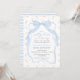 The back of the invitation features matching blue and white watercolor stripes, giving the design a gentle, storybook feel. Perfect for spring or summer baby showers, this gender-neutral design works beautifully for baby boys, baby girls, or surprise gender celebrations. Ideal for parents who appreciate illustrated, cottagecore-inspired stationery with a humourous twist.