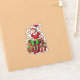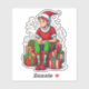 Silly Funny Christmas Santa Claus Elf Boy Transparent Design Sitting on Gifts Sticker Illustration