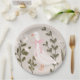 Enjoy your baby shower treats on these matching paper plates. Waddle you do without this darling Silly Goose baby shower collection? Designed to celebrate the arrival of your baby girl, these vintage-inspired hand-drawn geese wearing sweet pink bows, set against soft minimal background and lush meadow greenery. This charming and whimsical design is perfect for a baby girl shower, baby brunch, or whimsical garden party. With a mix of storybook charm and modern elegance, this theme sets the tone for a joyful and stylish celebration. See the entire collection for more matching items!