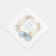 Elevate your table setting with these elegant Silly Goose Blue Floral Baby Shower Napkins. This high-end design features a voluminous, cream-colored ribbon wreath accented by a delicate crown of blue wildflowers and soft peach blossoms. A large, beautiful blue bow with a soft star pattern serves as the focal point at the bottom, creating a sophisticated and boutique feel.