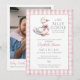 This charming baby shower invitation features a cute little goose and a pink gingham background. The reverse features your special photo and a registry QR code. Designed by Thisisnotme©
