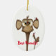 Stretch the adorable monkey is hanging out with his three tiny ladybug friends. Make this ornament your own by adding your own text, or delete to leave blank. Based on an original art piece by © One Artsy Momma.