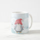 Watercolor illustration features silly penguin in Christmasy winter hat with winter scene background. Personalise with customisable text in modern brown font