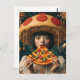 Silly Pizza Woman With Pepperoni Mushroom Hat Postcard