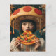 A psychedelic pizza woman with a giant pepperoni mushroom hat AI generated art