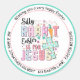 This vibrant and festive Easter sticker features a playful design with the text "Silly Rabbit Easter is for Jesus" in colourful, patterned letters. The word "RABBIT" is decorated with bunny ears and feet, while a carrot and a cross add to the Easter theme. The outer ring of the sticker includes a customisable greeting, making it perfect for personalising your Easter messages. The sticker is bordered with a teal and pink outline, adding a cheerful touch to any envelope or package.