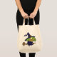 silly witchy witch toad on broomstick tote bag
