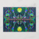 "Silurian Globe" Fantasy Art Postcard inspired by unusual life forms of the geologic era known as the Silurian Period with digitally enhanced original fluorescent colour mixed media assemblage artwork photographed by the artist in black (UV ultraviolet) light.