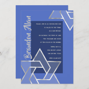 Boys Blue and Silver Baptism Christening Invitation