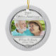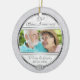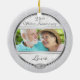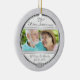 Beautiful 25th Silver wedding anniversary personalised photo ornament! This lovely double sided ceramic ornament features a classy silver edging design, and a silver digital art look frame centre area which is ready for you to upload your photo on both sides! On the front it reads 25th Anniversary' on top, with the couples names, date and year on the bottom in an elegant silver font. The back of the ornament also reads 25 Silver Anniversary, with "Love" and the year on the bottom. Personalise it with your favourite photo, couples names, and a date in the easy to use template areas right here on this page. To edit font size, colour or style simply click on 'customise' and those options will be made available to you as well. This ornament is a great gift and keepsake addition for your anniversary and ornament collection, or for family and friends! This can also be a lovely silver anniversary party favour idea! For more anniversary, invitations, favours, gifts and keepsakes please visit our shop!