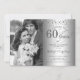 60th Wedding Anniversary Invitation with Photo. Elegant design in silver with script font and diamonds confetti. Can be customized to show any year of marriage. Cheers to 60 years!