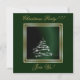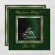 Silver Abstract Christmas Tree On Green. An elegant, classy minimal Christmas design with gold border featuring an abstract silver Christmas tree with pearls and stars on green glowing background.
