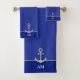 Elegant light silver grey Anchor and monogram on deep blue Bath Towel Set. Monogram can be personalised. Ideal for everyone!
