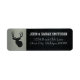 These rugged and modern return address labels are great for hunting themed invitations, hunting guide companies, or hunt clubs. They feature an antlered deer on a silver background. The address and names can be resized to make them fit for longer or shorter text. The address and names sit on top of a black diamond plate background.