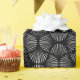 This elegant and glamourous wrapping paper is versatile and can be used for giving gifts or art and craft projects. It is ideal for any occasion such as birthdays, weddings, bridal showers, baby showers, anniversaries or general gifts. The design features silver art deco patterns on a black background.