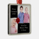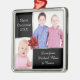 Silver and black Christmas photo ornament with red ribbon decoration and space for 2 photographs. Square metal ornament with red ribbon to hang on your tree. Click 'customise it' to reposition your photo if needed.