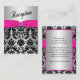 ** Please note that the ribbon and jewels are works of art, and are not real. This hot pink, silver, and black damask enclosure card matches the Bat Mitzvah invitation and other items shown below. You can remove the word "reception" if you need it to be a directions card or something else. You can contact me if you would like a similarly designed word instead. If there are any other matching items you require, please email niteowlstudio@gmail.com.