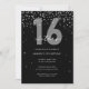 Silver and black glitter sparkle 16th birthday invitation