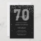 This goregous 70th invitation features silver sparkle discs on black background. For more advanced customisation of this design, e.g. changing layout, font or text size please click the "CUSTOMIZE" button above. Please contact me for any questions!